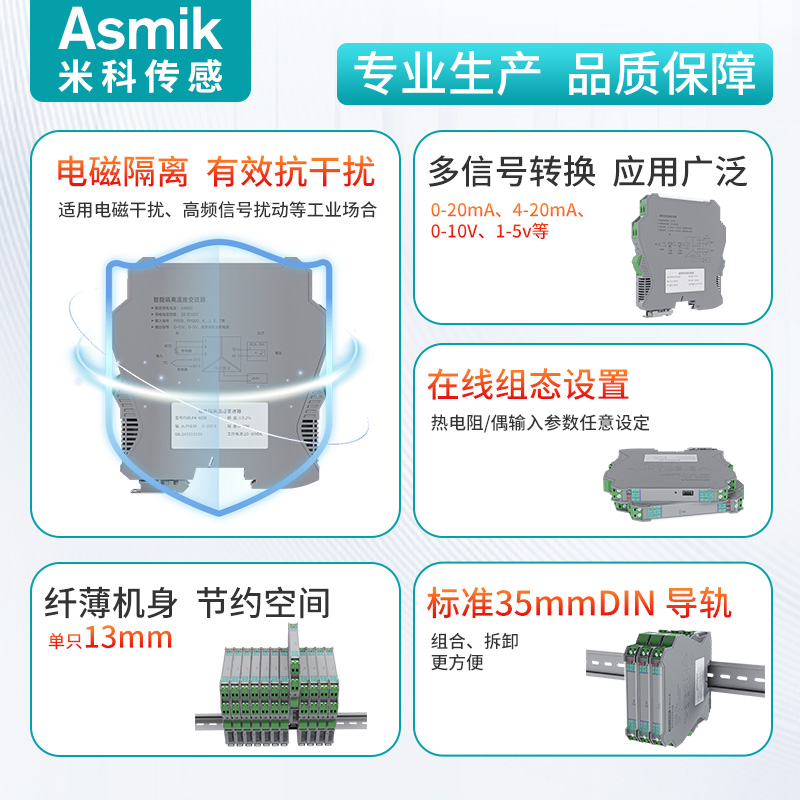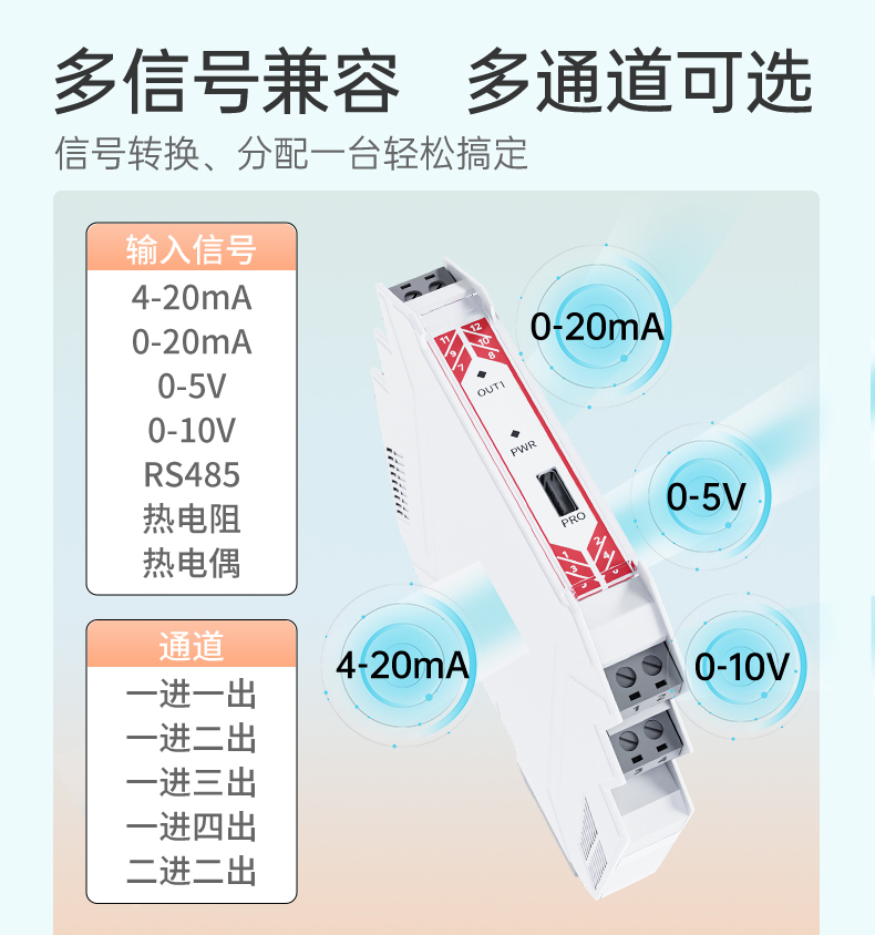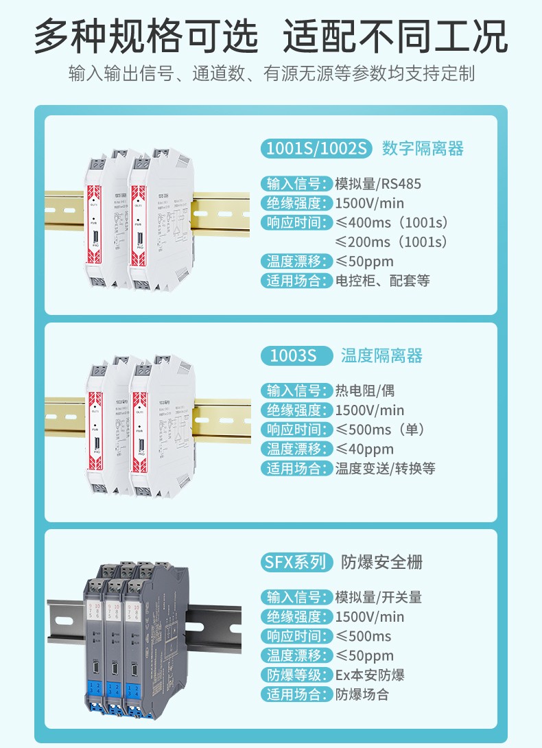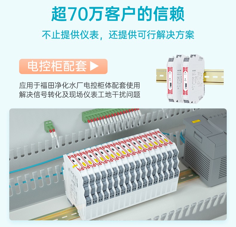 適用場合:隔離器給二、三線制變送器提供隔離的工作電源,將變送器產生的電流信號隔離并轉化為其他儀表所需的信號,實現輸入、輸出、電源之間的三端隔離,從而提高工業過程自動控制系統的抗干擾能力,保證系統的穩定性和可靠性。隔離器可與各類儀表、DCS、PLC 等設備配套使用,在石油、石化、制造、電力、冶金等行業的重大工程中有著廣泛應用。
