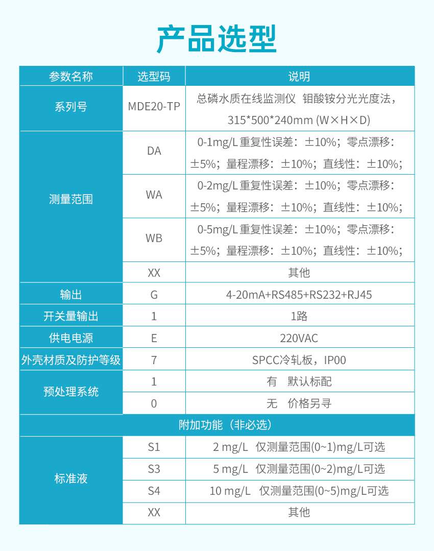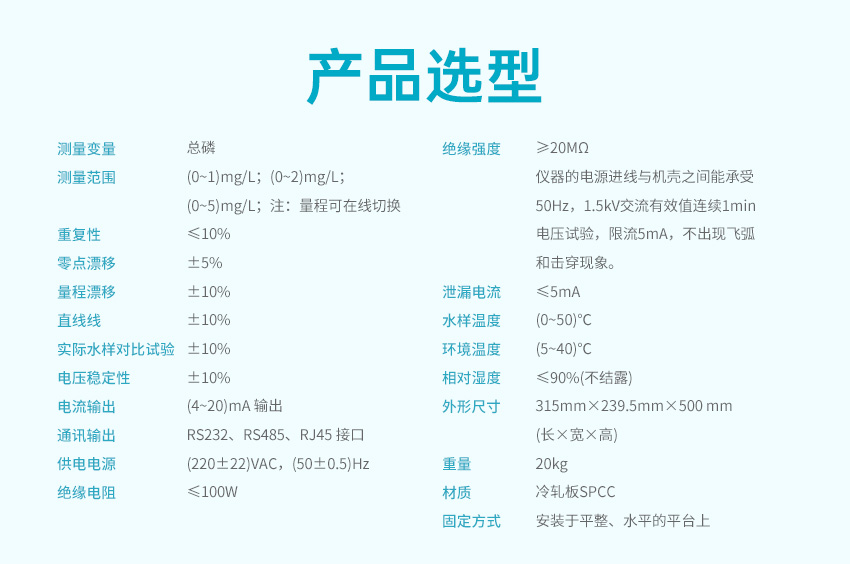 適用場合:TP 型總磷水質在線分析儀采用鉬酸銨分光光度法檢測,符合《總磷水質自動分析儀技術要求》(HJ/T 103)、《水質 總磷的測定 鉬酸銨分光光度法》(GB 11893)、《污染物在線自動監控(監測)系統數據傳輸標準》(HJ 212)、《地表水自動監測儀器通信協議技術規定》等標準和規范的要求。