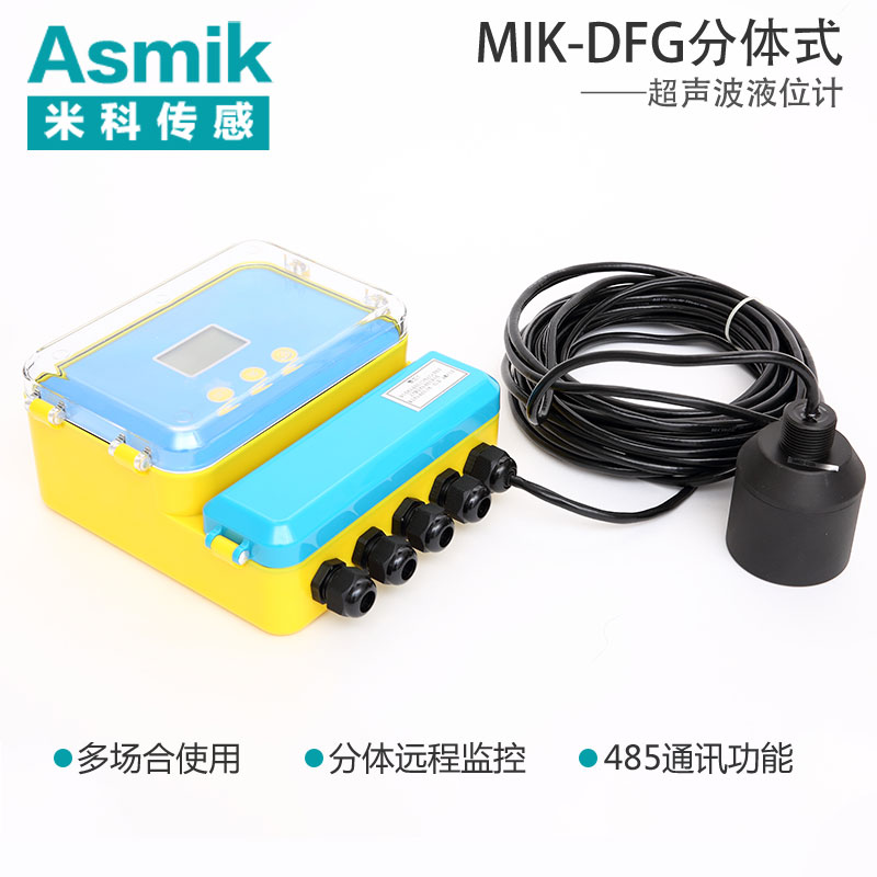 MIK-DFG分體式超聲液位/物位計是測量一個超聲波脈沖從發出到返回整個過程所需的時間。超聲波液位計垂直安裝在液體的表面,它向液面發出一個超聲波脈沖,經過一段時間,超聲波液位計的傳感器接收到從液面反射回的信號,信號經過變送器電路的選擇和處理,根據超聲波液位計發出和接收超聲波的時間差,計算出液面到傳感器的距離。分體式超聲波液位計廣泛用于罐體、水池、水庫的液位和體積測量,也可用于明渠的流量測量。