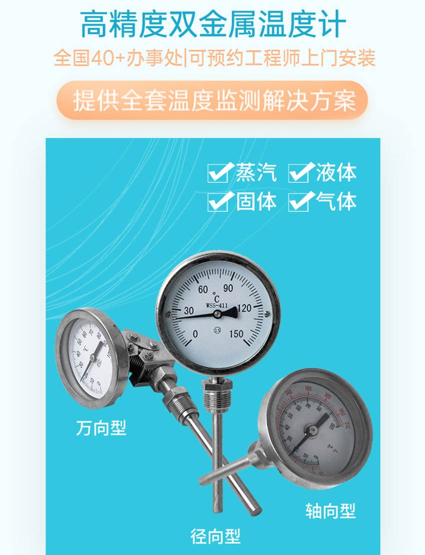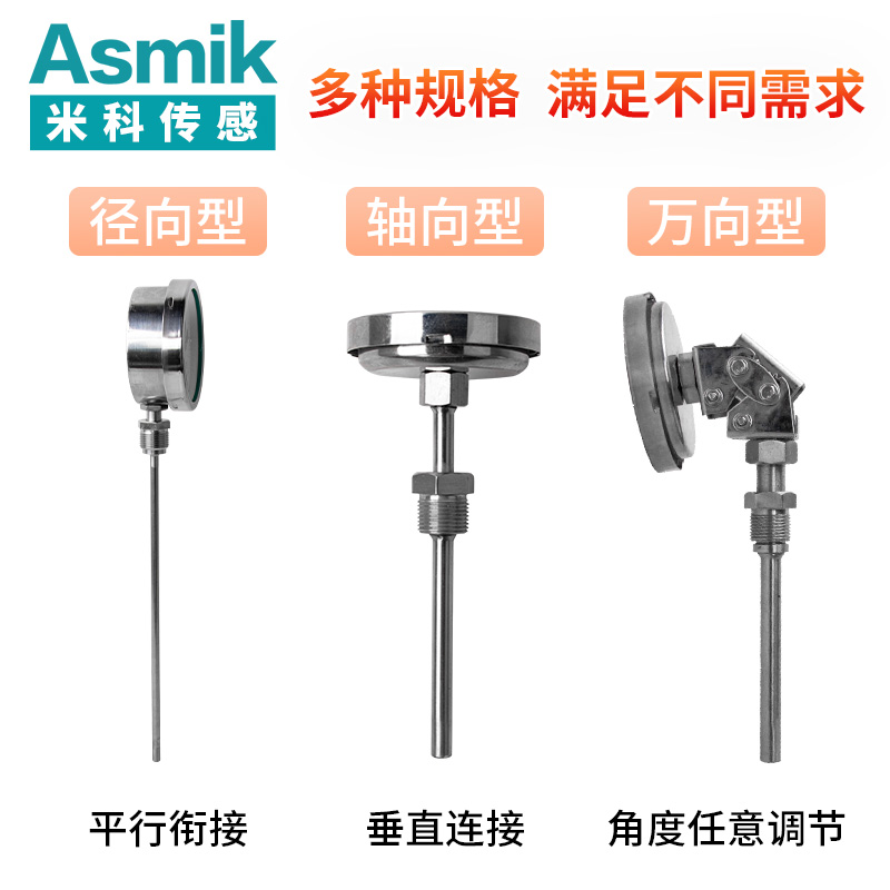 適用場合:杭州米科儀表專業生產不銹鋼徑向、軸向、萬向工業用雙金屬溫度計可用于窯爐、烤箱、管道,測量氣體、液體、蒸汽的溫度